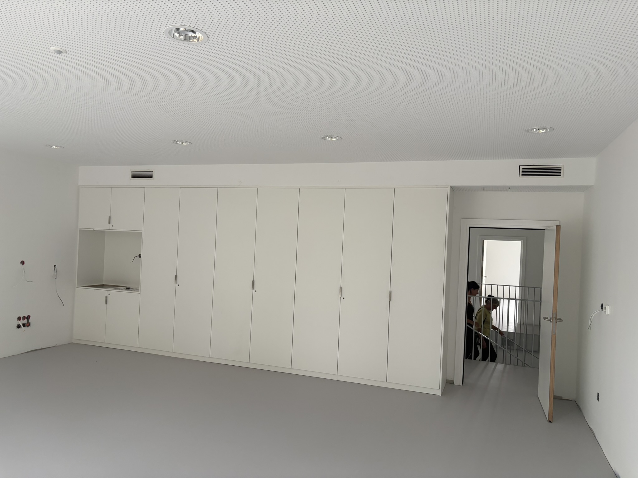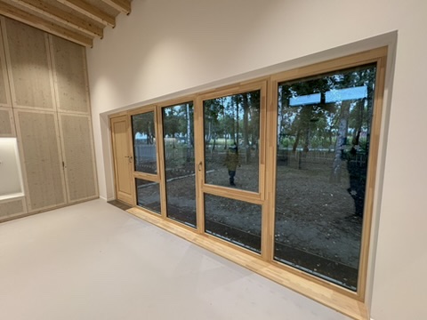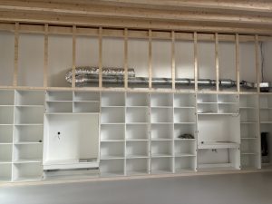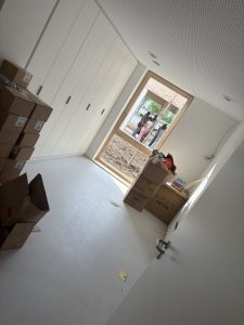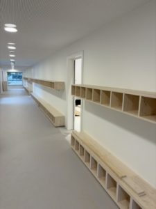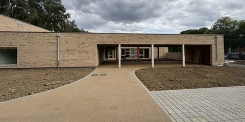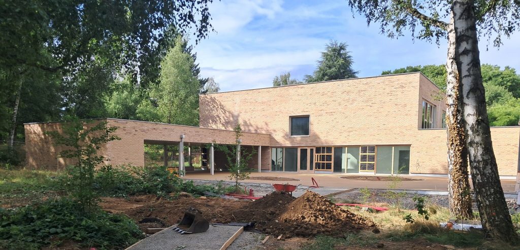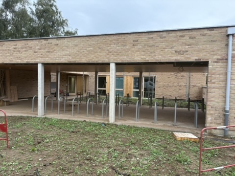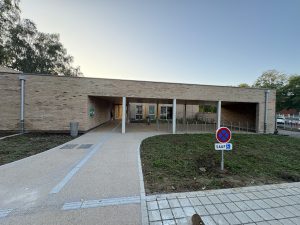 L’entrée de la partie administrative de l’école et son abri à vélos.